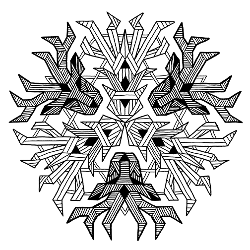 For the word “Deer”, Amanda constructs a crystalline mandala of antlers and geometry. Interlocking lines form mirrored antler shapes that radiate from the center, creating a sense of symmetry and strength. The pattern feels architectural — a fusion of nature and structure that evokes both wilderness and precision.