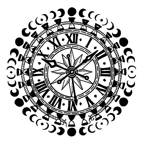 For the word “Heavy”, Amanda constructs a timepiece-like mandala where weight is measured not in mass, but in moments. Clock hands, lunar phases, and pendulum forms orbit the center in precise rhythm. The layered geometry evokes the gravity of time itself — its pull, its cycles, and the quiet pressure of inevitability.